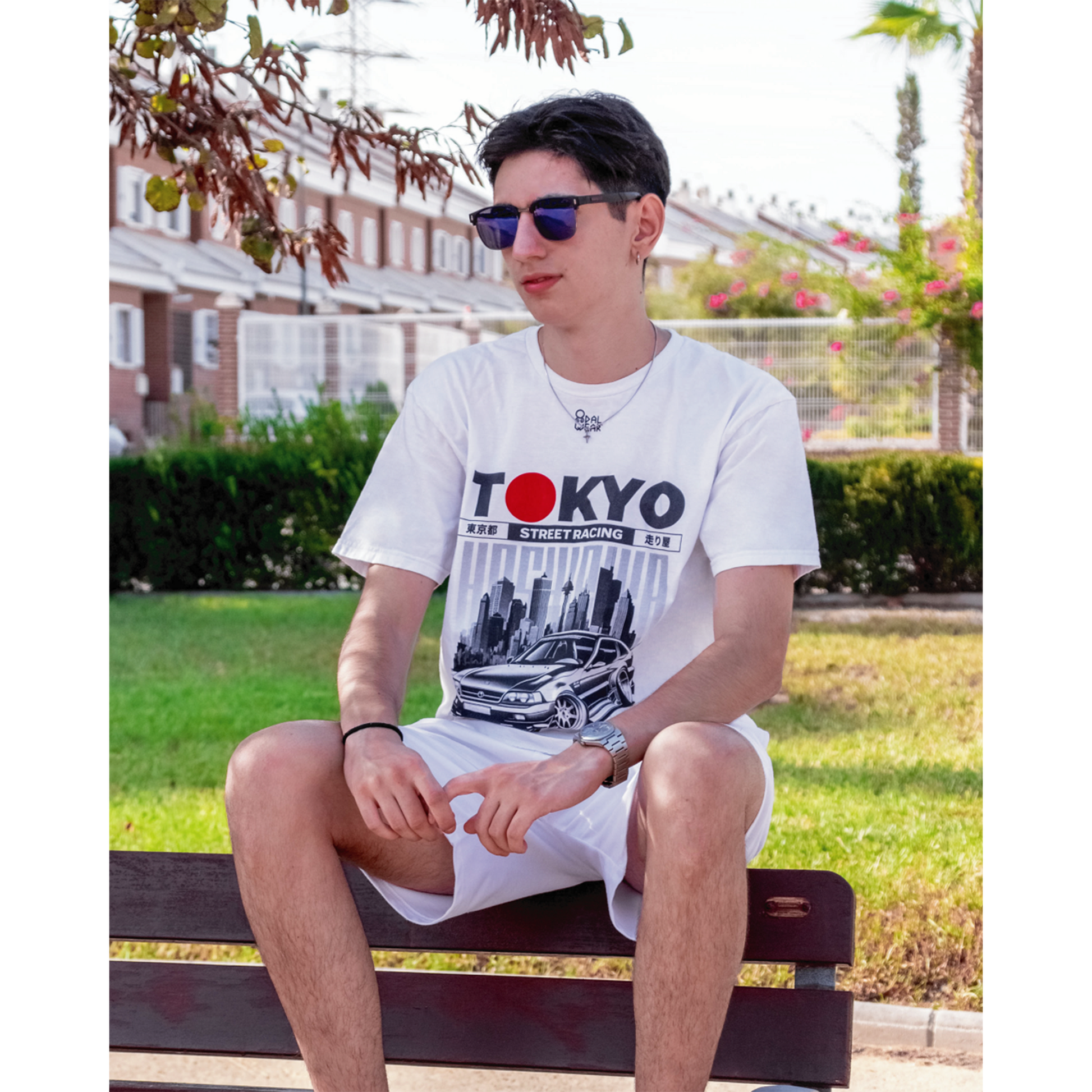El diseño evoca el mundo del street racing japonés, con un automóvil tuning de alto rendimiento en primer plano, símbolo de potencia, precisión y rebeldía. De fondo, los rascacielos de Tokio emergen con fuerza, representando la vida urbana nocturna donde estas máquinas cobran vida. Los caracteres japoneses (“東京都” y “走り屋”) resaltan la autenticidad del diseño: un homenaje a los corredores callejeros, conocidos como hashiriya, íconos de una subcultura donde la adrenalina, la técnica y el honor se cruzan en cada curva.